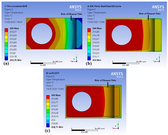 - TBC affected the distribution of temperature on AHB by preventing heat loss. The temperature of the filament tube hole increased;