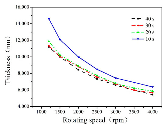 The relationship between the spin speed, spin time and the thickness.