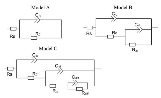 Equivalent electrical circuits used for numeric fitting of EIS data.