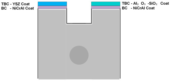 This experimental test involved three types of pistons, which included an uncoated piston, YSZ-coated piston crown, and Al2O3·SiO2-coated piston crown. The thermal barrier coating was built on the piston crown using the plasma spray technique. A small amount of SiO2 was introduced and blended into the Al2O3 coating. NiCrAl was used to bond the thermal barrier coating with the surface of piston crown. Figure 3 presents a schematic diagram for the thermal barrier coating, whereas Figure 4 shows the thermal barrier coating of YSZ and Al2O3·SiO2 on the piston crown.