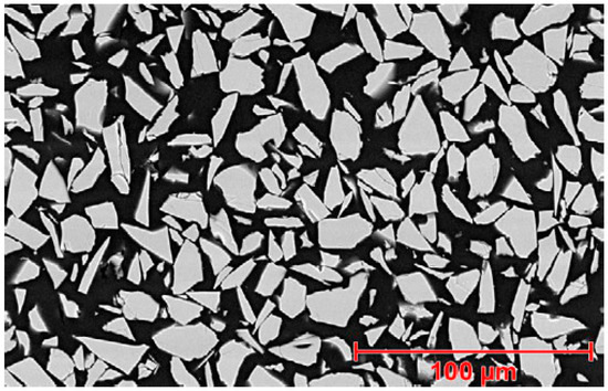 Al2O3·SiO2 is a fused and crushed material developed specifically for application using plasma spray as part of a TBC. The SEM of Al2O3·SiO2 powder morphology and microstructure are shown in Figure 5 and Figure 6, respectively. The typical material characteristic of Al2O3·SiO2 is presented in Table 2. Al2O3·SiO2 has lower thermal expansion compared to YSZ. Furthermore, Al2O3·SiO2 also delivers low thermal conductivity, is superior in abrasion resistance, and has higher phase stabilization through the life span of the coating, with an allowable operating temperature in combustion engine operations.