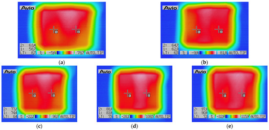 Heat distribution map of C1.1: (a) 15 min; (b) 30 min; (c) 45 min; (d) 60 min; (e) 75 min.