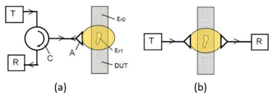 Microwave testing in (a) reflection mode and (b) transmission mode [37].