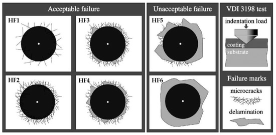 However, it is possible to investigate crack formation and delamination of hard coatings after the indentation test by comparing the imprints observed using scanning electron microscopy with the failure chart according to VDI 3198 standard [16] (Figure 2).
