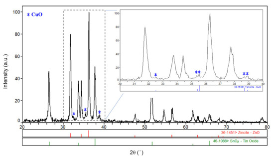 - Zhu, G.; Xu, H.; Xiao, Y.; Liu, Y.; Yuan, A.; Shen, X. Facile fabrication and enhanced sensing properties of hierarchically porous CuO architectures. ACS Appl. Mater. Interfaces 2012, 4, 744–751. [Google Scholar] [CrossRef]
