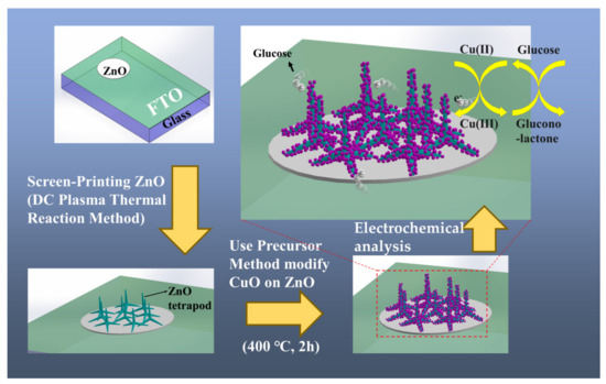 - Zhou, C.; Xu, L.; Song, J.; Xing, R.; Xu, S.; Liu, D.; Song, H. Ultrasensitive non-enzymatic glucose sensor based on three-dimensional network of ZnO-CuO hierarchical nanocomposites by electrospinning. Sci. Rep. 2014, 4, 7382. [Google Scholar] [CrossRef] [PubMed] [Green Version]