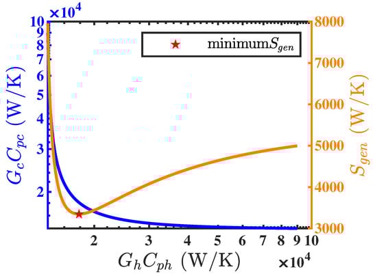 Different heat capacity rate pairs and corresponding total entropy generation.