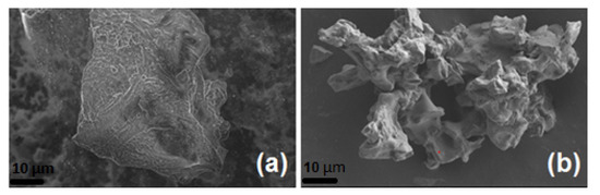 Pure coffee biowastes (hereafter referred to as Coffee) and treated-coffee (P-coffee) were imaged on SEM. Their chemical composition was also investigated using EDX. Figure 4 shows micrographs obtained from Coffee and P-coffee, and Table 2 summarizes their chemical compositions. The size of particles was between 10 µm and 100 µm. Some more SEM micrographs are available in the Appendix A.