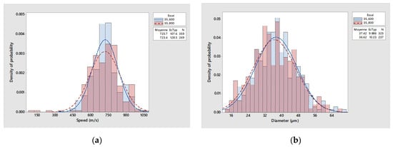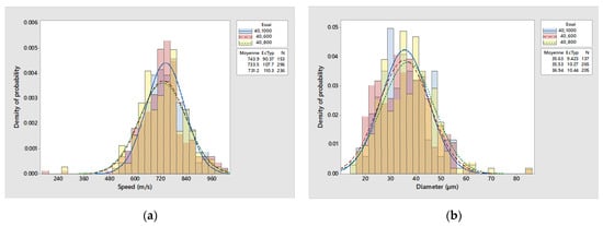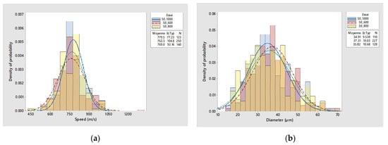 Figure 4, Figure 5 and Figure 6 represent histograms of the Ti3AlC2 particle velocities at a different gas temperatures between (800–1000 °C) in comparison for a selected pressure 3.5, 4 or 5 MPa in the CS process, in correlation with particle diameter density.