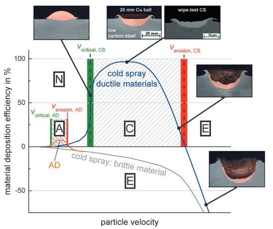 - Li, C.-J.; Li, W.-Y.; Liao, H. Examination of the critical velocity for deposition of particles in cold spraying. J. Therm. Spray Technol. 2006, 15, 212–222. [Google Scholar] [CrossRef]