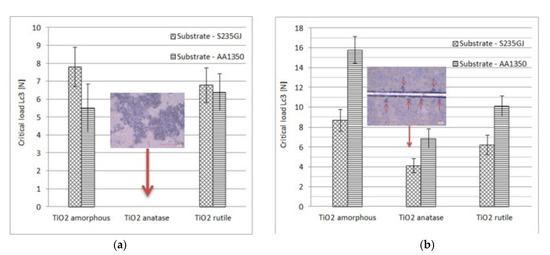 - Jaworski, R.; Pawlowski, L.; Roudet, F.; Kozerski, S.; Petit, F. Characterization of mechanical properties of suspension plasma sprayed TiO2 coatings using scratch test. Surf. Coat. Technol. 2008, 202, 2644–2653. [Google Scholar] [CrossRef]