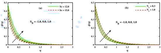 The impact of  for (a) Schmidth number  and (b) Buoyancy ratio parameter .