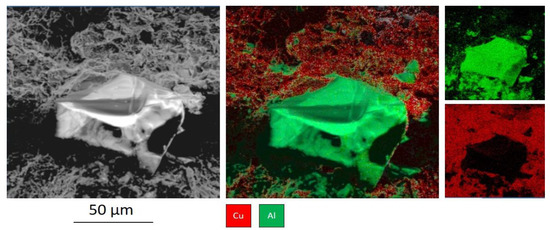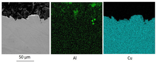Figure 13). No copper was found on the alumina particle surface. Consequently, copper does not seizure to corundum, and destruction occurs along the copper particles. These findings suggest that copper particles deform more when deposited onto the preprocessed substrate which is due to large, embedded alumina particles. It results in stronger adhesion of the coating. Consequently, the adhesion strength of the coating to the substrate may be lower in some places than the strength of the coating itself. Apparently, this is a rare and not the typical case for a substrate with preliminary treatment.