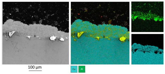 Figure 10 shows an area of the preprocessed substrate with Cu-60% Al