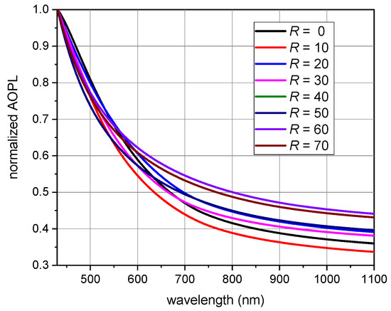 The correlation of the porosity and absorption shows that increased porosity causes the increase of the integrated direct Yablonovitch absorptance AYint after the transition from a-Si:H to μc-Si:H occurs (Figure 8). On the contrary, AOPL shows opposite behavior in and below the transition region of the dilutions R = (30 ÷ 40) (Table 1). AOPL based on the refractive index follows the decreasing refractive index with increasing dilution that is accompanied with increasing porosity (Figure 9). It is the direct evidence that selected absorption metrics must be interpreted in terms of involved fundamental optical properties—refractive indices and/or absorption coefficients.