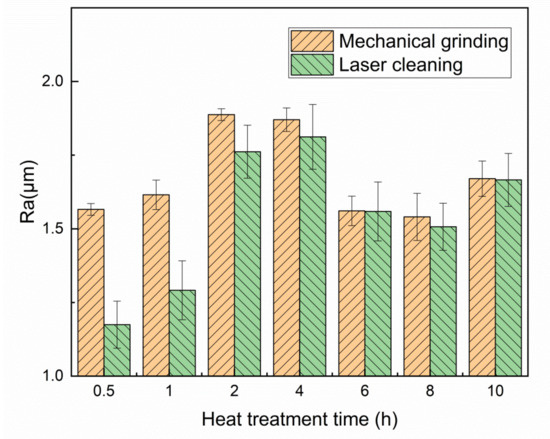 - Mechanical grinding and laser cleaning can remove titanium alloy oxide film. A small amount of scratches appear on the surface after mechanical grinding. However, the surface is relatively smooth after laser cleaning.