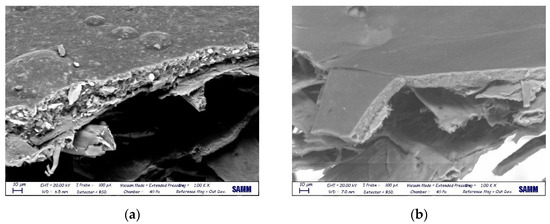 Coated samples were analysed through SEM micrographs for each condition at 0, 100, 200, and 300 h weathering time using a ZEISS EVO 50 (Zeiss, Wetzlar, Germany) electron microscope. 100×, 250×, and 500× magnification were used to retrieve surface morphology, while magnifications ranging between 1000–5000× were used to evaluate the film thickness (the images were analysed using ImageJ v1.53e).