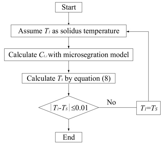 where is the virtual initial concentration of the solute element i; Csw,i is the concentration of the solute element i at fsw. The iteration method was used to calculate TS. The process of the calculation is shown in Figure 1.