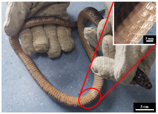 - Allam, A.A.; Abo-Eleneen, R.E. Scales Microstructure of Snakes from the Egyptian Area. Zool. Sci. 2012, 29, 770–775. [Google Scholar] [CrossRef] [PubMed]