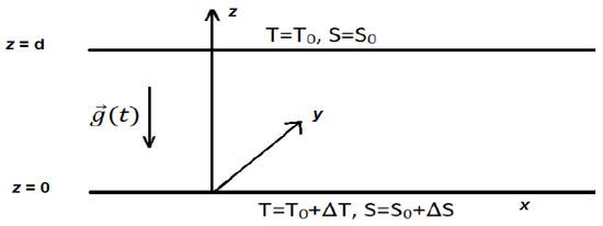 z is vertical coordinate. All the fluid physical properties are assumed to be constant, except for the density in the buoyancy term. The governing equations in the presence of cross-diffusion parameters for rotating fluid in a sparsely packed porous medium are considered such that the Oberbeck–Boussinesq approximation is valid.