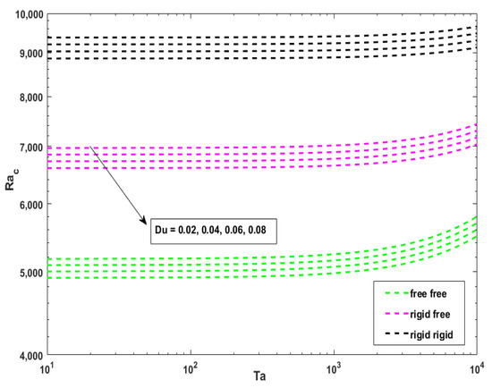Ta causes stabilization of the system, whereas the behavior of the Dufour parameter, i.e.,