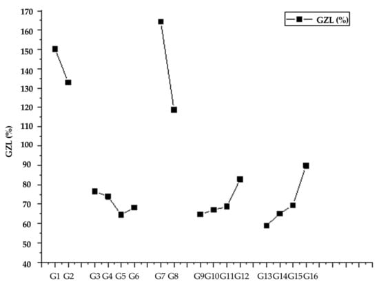 Change trend chart of factor and level for the effect of GZL (%).