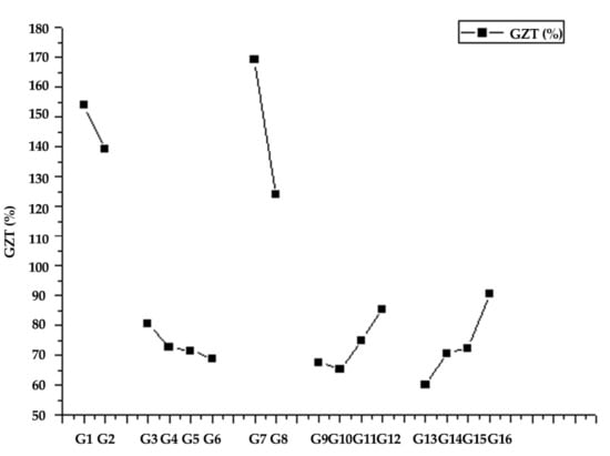 Change trend chart of factor and level for the effect of GZT (%).