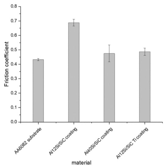 Average friction coefficient for the substrate and coatings on the AA6082 aluminum alloy.