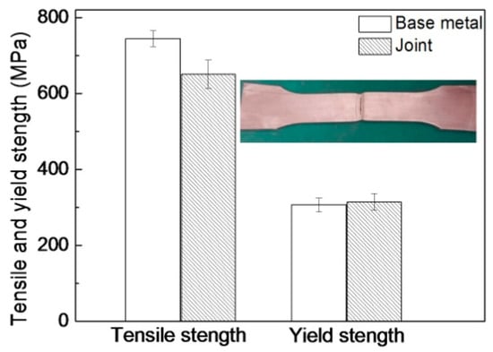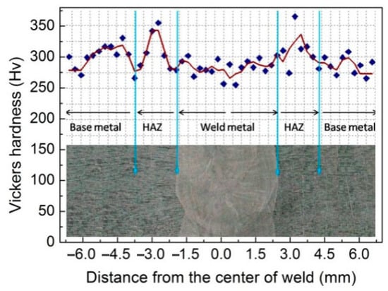 - The micro-hardness of the weld seam is almost equal to that of the base metal, which is slightly lower than that of HAZ. The tensile strength of the welding joint is 87% of that of the base metal, while the yield strength of the joint is slightly higher than that of the base metal.