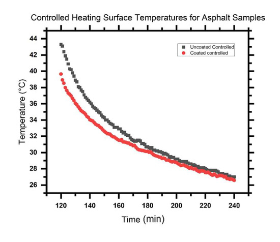 The surface temperature during cooling for both uncoated and coated asphalt in normal conditions.