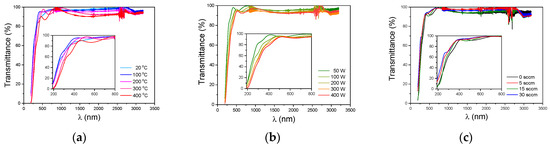 UV–Vis-NIR transmittance of the coatings was determined using Shimadzu UV-3101PC scanning spectrophotometer (Shimadzu, Kyoto, Japan) in the range of 190–3200 nm with a resolution of 2 nm. Absorption coefficient α was calculated from the transmission spectrum in the absorption edge, then optical band gap Eg was estimated using the Tauc′s plot.