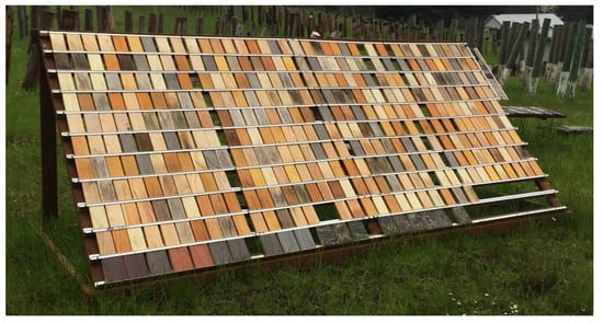 - Zanetti, M.; Mothe, F.; Merlin, A.; Janin, G.; Moguédec, G.; Goncalez, J. Consequences of weathering on the users’ aesthetic perception of oak wood (Quercus petraea (Matt.) Liebl.). Ann. For. Sci. 2003, 60, 61–68. [Google Scholar] [CrossRef][Green Version]