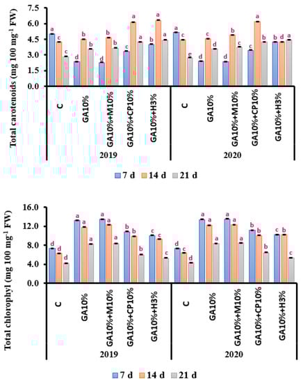 3.4. Effects on Total Carotenoid and Total Chlorophyll