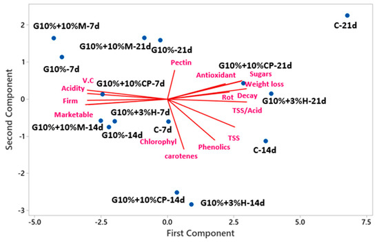 - Perdones, A.; Sánchez-González, L.; Chiralt, A.; Vargas, M. Effect of chitosan–lemon essential oil coatings on storage-keeping quality of strawberry. Postharvest Biol. Technol. 2012, 70, 32–41. [Google Scholar] [CrossRef]