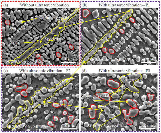 3.3. Effect of Ultrasonic Vibration on Microstructure of the Coatings