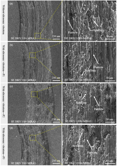 3.4. Effect of Ultrasonic Vibration on Micro-Hardness and Wear Resistance of the Coatings