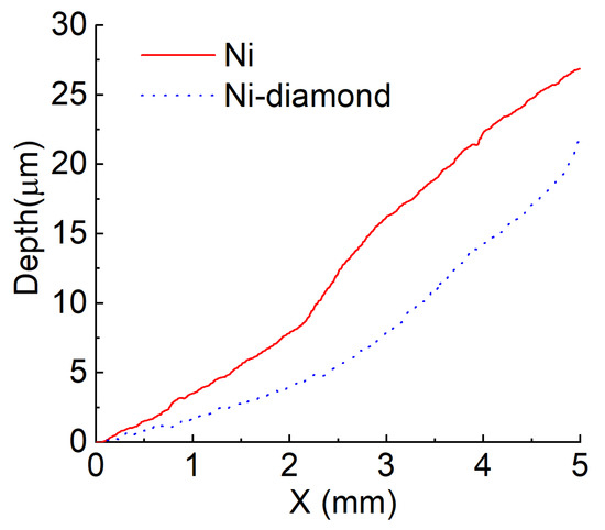 The end scratch depths for the Ni coating and the Ni–diamond coating.