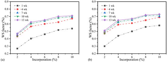 WS factor of (a) ISW-improved silt and (b) cement-improved silt.