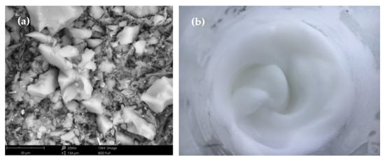 To improve the dispersivity of SiO2 aerogel power, non-ionic surfactant and anionic dispersant were added with the unmodified SiO2 aerogel power (15 wt.%), the mass fraction of the functional assistant agent was controlled at about 5%, and the rest was deionized water. The slurry had the best dispersion effect after dispersing at speed of 1000 r/min for 1 h, as shown in Figure 1b. It can be seen that the SiO2 aerogel power was uniformly dispersed in the slurry, which indicated that the dispersivity of SiO2 aerogel power was significantly improved after the modification.