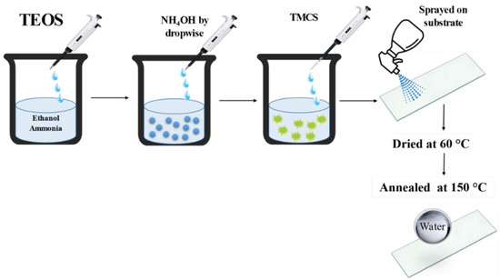 3.1. Fabrication of Superhydrophobic SiO2/TMCS Coating