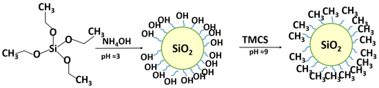 - Xu, B.; Zhang, Q. Preparation and Properties of Hydrophobically Modified Nano-SiO2 with Hexadecyltrimethoxysilane. ACS Omega 2021, 6, 9764–9770. [Google Scholar] [CrossRef]