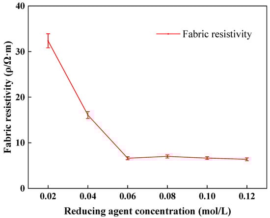 Fabric resistivity of the prepared samples with different reducing agent concentrations.