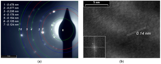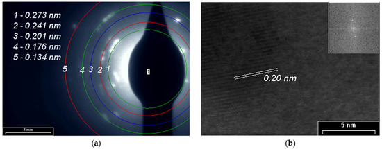 (a) SAED pattern; (b) HR-TEM images and in inset the fast Fourier transform (FFT) pattern of the PPAni film.