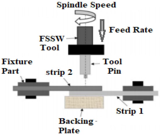 Several factors can influence the FSSW process, including the tool material, tool rotation speed, tool head angle, pin length, pin profile, workpiece material and thickness, temperature input, and welding speed. These parameters are distinct, yet they each have an impact on the others [11]. To obtain products with the best mechanical performance while keeping costs to a minimum, the most appropriate process conditions should be chosen while considering the intervention requirements among these factors [12]. Considering new advances in artificial intelligence (AI) technology, its applications have grown significantly in numerous industrial domains [13,14,15,16,17]. Some other techniques used in the field of material engineering provide precise formulations for strength prediction; however, the accuracy is compromised [18,19,20,21,22]. The accuracy of the developed model depends on the optimization parameters, the number of input variables, and the number of entries being used while modeling [23,24].