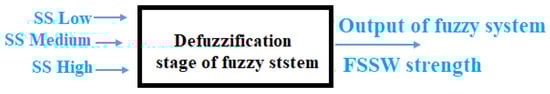 Defuzzification process in FSSW strength fuzzy system.