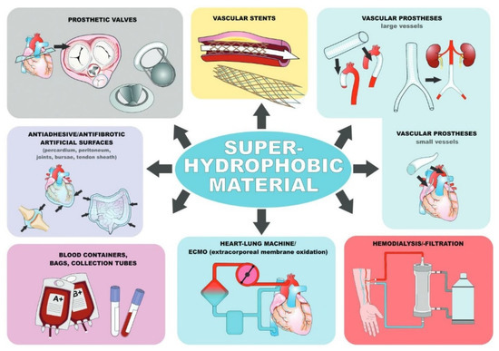 Coatings utilized as blood-repellent surfaces for medical devices [178].