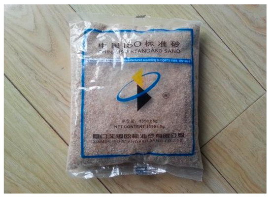 (2) Sand particles. ISO Fujian standard sand (as shown in Figure 5) was used as sand material in the tests to ensure the consistency of each group of tests. In addition, the density bottle method was adopted to measure the specific density (2.60) of sand in a dry state.