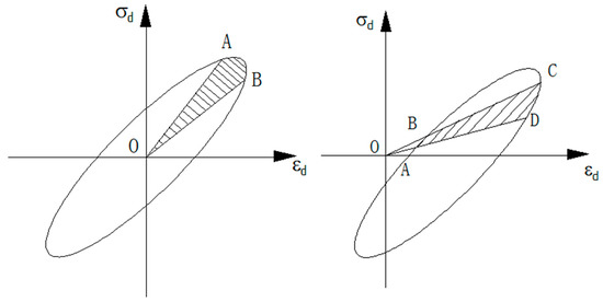 At present, soil is regarded as a viscoelastic body to calculate the damping ratio, which is the ratio of the energy consumed to the total energy stored during a cycle of stress cyclic loading, and the calculation formula is shown in Figure 10.