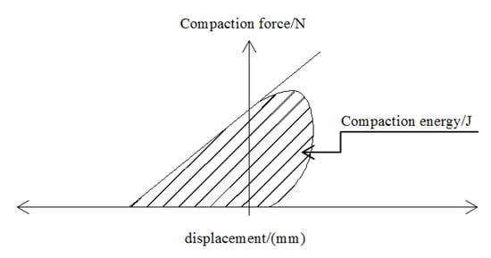 During the vibration-compaction process, the transmitted energy from the compaction machine to compacted material can be calculated [26] by the compaction pressure and displacement (Figure 3). The displacement-force curve is called the hysteresis curve, where the curve area represents the transmitted energy from compaction machine to compacted material. The pressure force and displacement can be tested by the pressure sensor and displacement sensor.