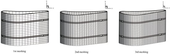 The multiphysics coupling problem of TBCs fracture is still the bottleneck of turbine blade design, optimization and production. The XLW method can be used as an efficient tool to address this problem. For instance, Li et al. [,,,,,,] analyzed the layered damage and transverse cracks of composite laminates by using the XLW method, which achieved a higher accuracy and less computation compared with the 3D elastic model. In the finite-element governing equation, the degrees of freedom (DOFs) for the upper and lower surfaces of the shell-like structures can be adjusted. This facilitates the combination of the XLW method with other methods according to the compatibility conditions of TBCs/substrate interface [,,,,,,,]. Li [,] developed a steady-state and dynamic thermo–mechanical XLW method for the laminated composite plates with multiple delaminations and transverse cracks. A similar study by Li and Shan [] developed a chemo–mechanical XLW method for the multilayered porous media with different damage forms.